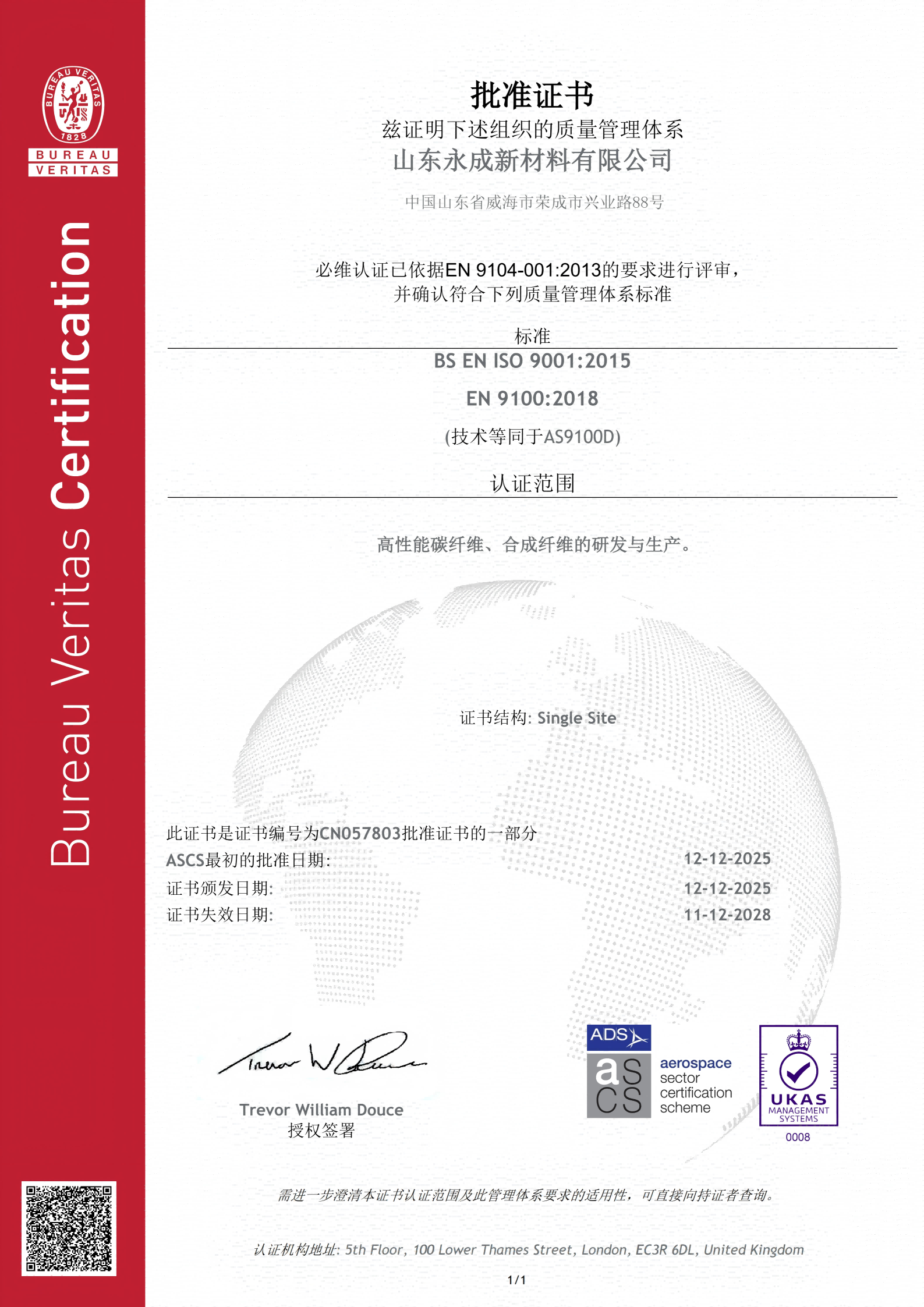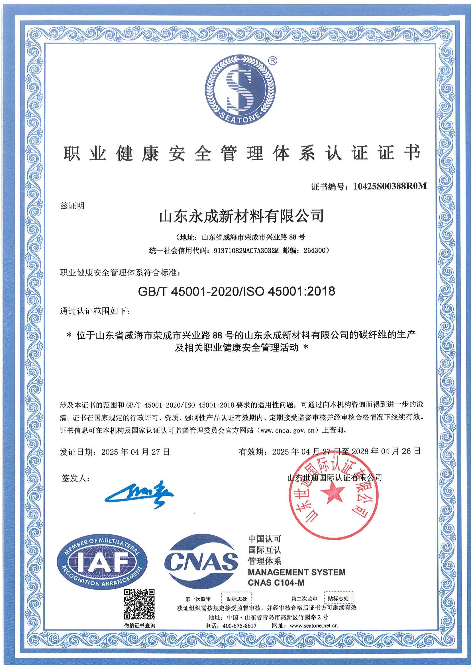 山东永成新材料有限公司成立于2023年1月,位于山东威海荣成经济开发区高端产业园,公司注册资本12.1亿元,占地面积908亩。年产12000吨高性能碳纤维项目由山东永成新材料有限公司总投资50亿元建设,主要从事高性能纤维及复合材料制造与销售,规划建设6条高性能碳纤维生产线及配套原丝装置。该项目一期工程于2023年3月启动建设,并于2024年8月顺利竣工投产,一期两套装置均实现一次性开车成功,产品质量与行业同类企业平齐。公司正根据项目投产情况、政策落实情况和市场需求加快推进后续项目的开工建设,并向行业下游产业链推进。